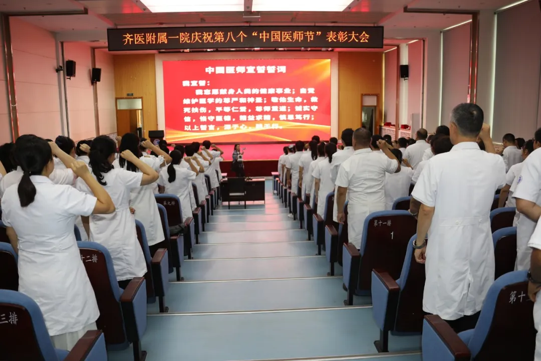 德馨于行,技精于勤。在第八个“中国医师节”到来之际,齐医附属一院于2025年8月18日下午,在内科综合楼学术报告厅召开庆祝第八个“中国医师节”表彰大会。院领导、科主任、护士长、科级干部及科室非值班医生、技师参会,副院长薛徽(主持工作)主持会议。