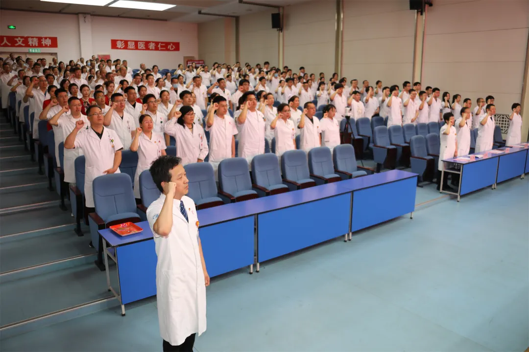 会议在雄壮的国歌声中拉开帷幕。全体医师起立,在医务部部长张羽镝的带领下,重温《中国医师誓言》。