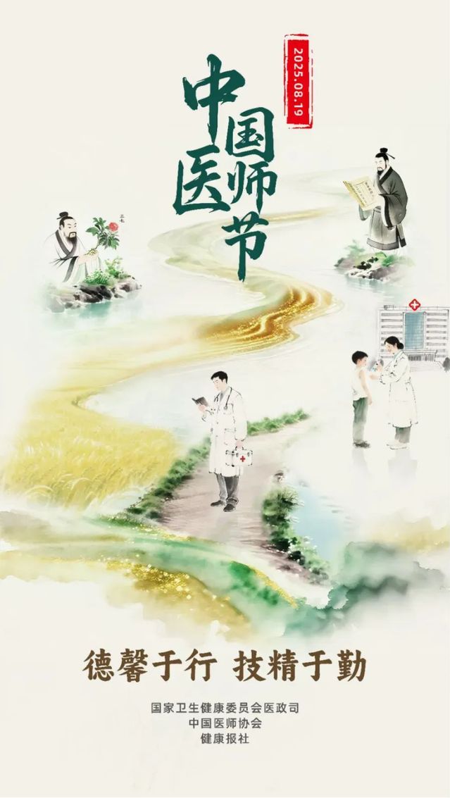 今天是2025年8月19日,第八个中国医师节,节日主题为“德馨于行,技精于勤”。