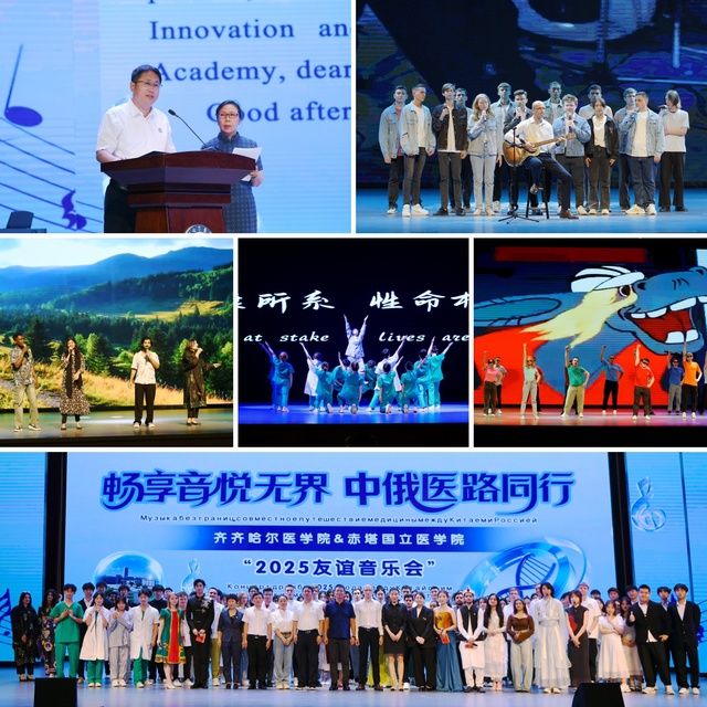 8月29日,一场汇聚俄罗斯赤塔国立医学院学生、齐齐哈尔医学院本科生及留学生的友谊音乐会在体育馆举行。学院领导班子成员出席友谊音乐会,学院副院长裴俊瑞为音乐会致开幕词。美妙的旋律、动人的舞姿与热烈的掌声交织,为为期一周的交流活动画上了圆满句号。