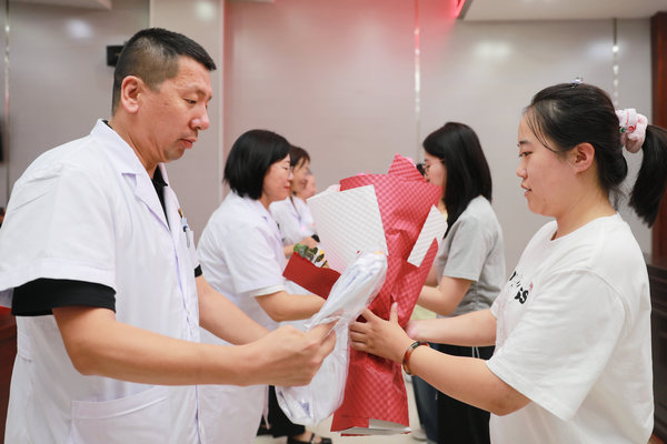 随后,研究生导师代表为新生代表佩戴校徽,一枚枚校徽轻贴领口,是身份的认可,更是责任的传递;新生们向导师献上鲜花,娇艳的花瓣里,藏着对师长的敬意与感谢。这一刻,师生心手相连,标志着2025级新生正式成为齐医附属二院这个温暖大家庭的一员。