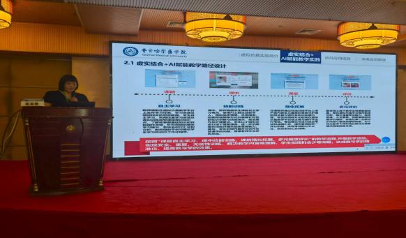 受虚拟仿真实验教学创新联盟护理学类专业工作委员会委托,齐齐哈尔医学院护理学院张英艳副教授以《产房内新生儿窒息的急救与护理虚拟仿真实验》为题作专题报告。她结合学院虚拟仿真实验教学领域省级一流课程建设经验,从实验设计、“虚实结合+AI赋能”教学实践等维度与参会专家深入交流,详细介绍了该项目的建设成果及推广情况。