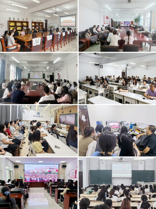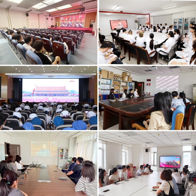 上午9时整,学院1801会议室内,学院领导与机关处科级干部整齐落座,大家神情肃穆,通过大屏幕同步收看纪念大会直播。各二级学院、附属医院也分别组织观看了阅兵式。师生们坐在屏幕前,沉浸在庄严肃穆又激动人心的氛围里。随着受阅方阵以铿锵步伐通过天安门广场,先进装备逐一亮相,现场不时响起赞叹之声,师生们被阅兵式所展现的国威军威及其背后代表的科技发展所深深震撼。