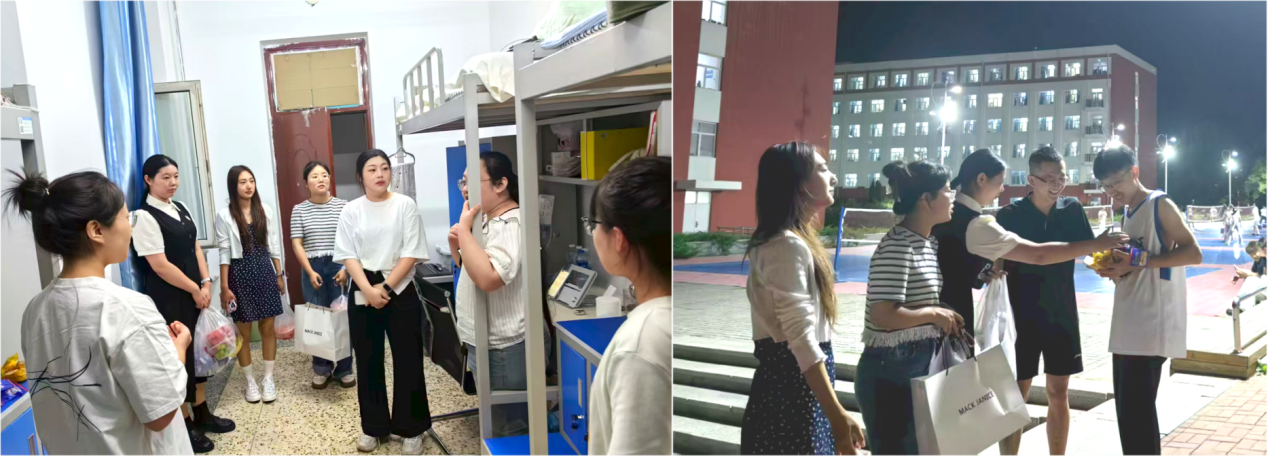 会后关怀暖人心,贴心服务助融入。仪式结束后,学院领导、导师及研究生管理科人员共同前往研究生新生寝室开展慰问,实地了解新生住宿环境与生活需求。各学科秘书第一时间建立研究生联络工作群,同步推送科室处所、教师信息及学习办公区安排,为新生快速融入学科搭建 “沟通桥梁”。研究生学长还为新生送上水果与甜点,以暖心举动传递学院大家庭的关怀,让新生切实感受到归属感。
