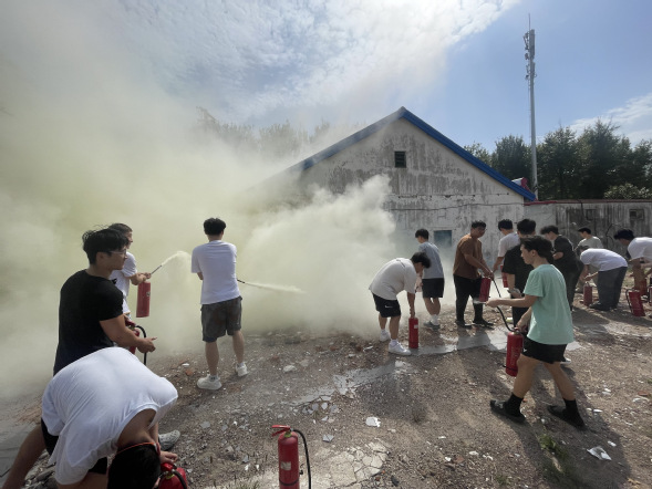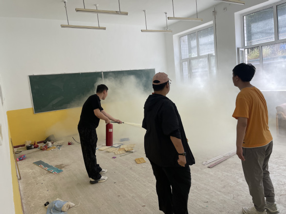 最受同学们期待的环节是灭火器实操演练。在保卫科专业人员的详细讲解和示范下,同学们认真学习了干粉灭火器的使用方法、操作步骤及注意事项(“提、拔、握、压”四字口诀)。在确保安全的前提下,同学们分批上前,亲身体验了如何使用灭火器扑灭初期火灾。通过亲手操作,大家克服了面对火情的恐惧心理,真正掌握了灭火器的实际操作技能。