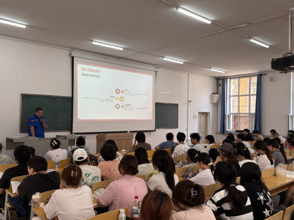 活动伊始,保卫科在学生阶梯教室举行了消防安全知识专题培训。医院保卫科的专业老师通过大量真实的火灾案例,以图文并茂的形式,深入浅出地向同学们讲解了校园火灾的常见起因、预防措施、火场逃生的基本要领、报警注意事项以及日常学习生活中的消防安全隐患。生动的讲解让同学们深刻认识到“防患于未然”的重要性。