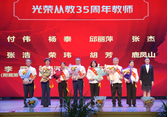党委副书记迟沫涵为光荣从教满35周年教师代表颁奖