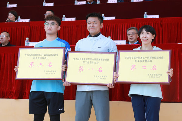 秋高气爽,彩旗飘扬。9月11日至12日,齐齐哈尔医学院第34届田径运动会在校区运动场隆重举行。附属二院领导班子、干部职工、运动员及学生代表100余人齐聚赛场,共同参与了这场体育盛会,经过两天的激烈角逐,附属二院喜获职工组团体第一名,大学生团体操集体表演一等奖。