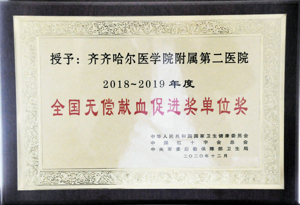 医院荣膺了2018-2019年度全国无偿献血促进奖单位奖、全国改善医疗服务示范医院,当选省抗击新冠肺炎疫情先进集体、省首届“暖心医疗服务”优秀医院、省首家集体组织捐献成分血的爱心单位。重症医学科荣获省“工人先锋号”。1人荣获全国疫情防控先进个人,2人荣获全国卫生系统疫情防控先进个人,1人当选中国好医生、中国好护士年度人物,10余人获全省疫情防控先进个人、省五一劳动奖章、龙江好人,全省道德模范、龙江最美医生、龙江最美护士等荣获称号,47名党员获社区疫情防控“最美逆行者”称号。