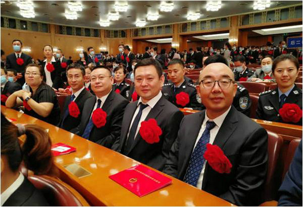 全国疫情防控先进个人张东海(右一)参加表彰仪式