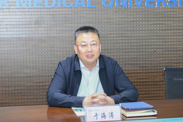 于海涛副院长代表学院对刘永强院长一行来访表示热烈欢迎。他介绍了学院在医教研等方面的发展历程、办学规模、未来发展规划等方面情况,欢迎泰安八十八医院与学院进一步深入合作,培养更多优秀的医疗人才。刘永强详细介绍了融通集团及泰安八十八医院的发展情况、医院特色,表达了未来与学院就学生人才培养、科研合作等方面开展进一步深入合作的愿望。
