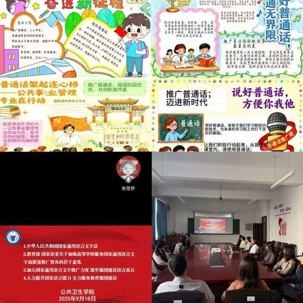 为深入贯彻落实党的二十大和二十届二中、三中全会精神,深入学习习近平总书记关于语言文化的重要指示批示精神,传承弘扬中华优秀语言文化,推进学院语言文字事业高质量发展,公共卫生学院于9月13-22日开展以“加大国家通用语言文字推广力度 促进铸牢中华民族共同体意识”为主题的推普周活动。