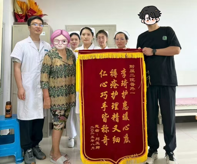 近日,齐医附属二院普外科一病区成功治愈多位严重褥疮患者,其中包括一位90岁高龄退休教师和一位因居住土炕足部受压导致严重感染的患者。经过该科主任王峰及其医疗团队的专业治疗和精心护理,患者均康复出院,家属感激不已,特地送上锦旗致谢。