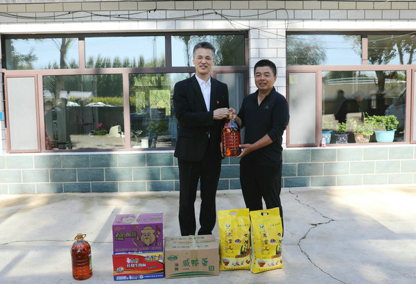 齐医附属二院党委书记刘增良为驻村干部李磊送慰问品