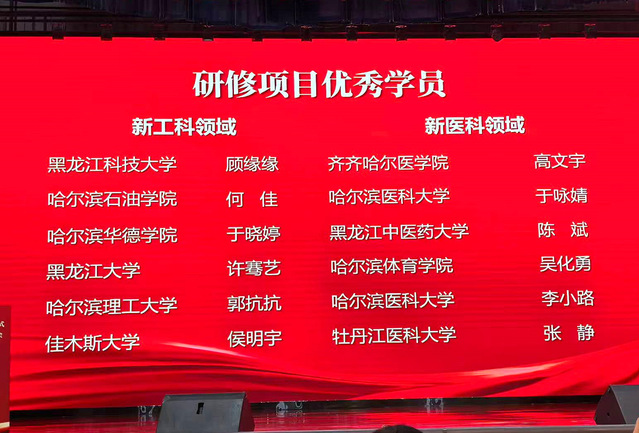 9月26日,由黑龙江省教育厅主办的本科高校青年教师教学发展示范性研修项目在黑龙江中医药大学圆满落幕。学院青年教师、基础医学院生理教研室高文宇,在为期1个月的深度研修中表现突出,经综合评定获新医科“优秀学员”称号,并在结业式上作为全省6所高校50位新医科领域学员代表登台发言,充分展现了学院青年教师的扎实素养与良好风貌。