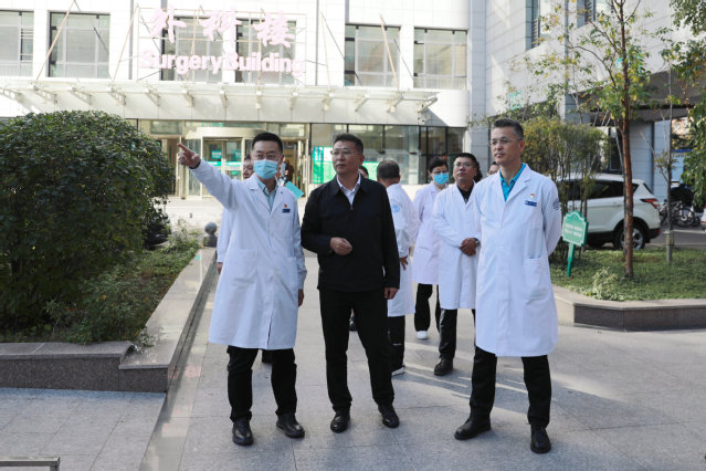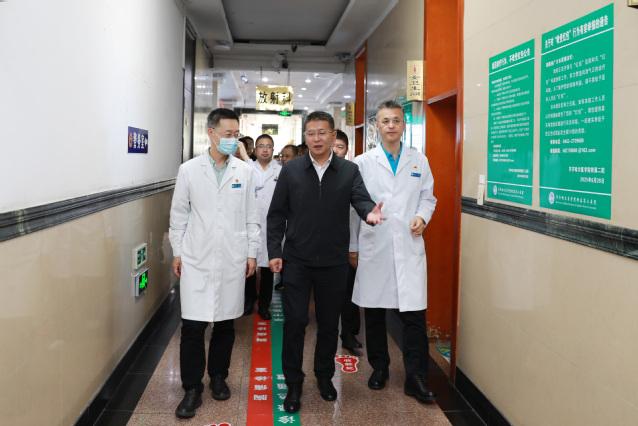 检查组围绕医疗安全、消防安全和后勤保障等重点开展实地督查,检查范围覆盖各附属医院门急诊、一站式服务中心、消化内科、普外科、消防控制室、直燃机房、食堂等重点区域。检查中,张可勇详细询问了各医院节假日排班、急危重症患者收治和药品物资储备等情况,强调要足量配备医务人员、设备和药品,保障群众假期就医需求。在消防控制室,他重点检查了火灾预警处置流程和值班记录,强调安全是医疗工作的生命线,必须坚决防范风险隐患。在医院食堂,他强调要加强食品安全管理和监测,保障患者及医务人员用餐安全。同时要求各附属医院必须严格落实安全生产主体责任,牢固树立安全工作无小事的底线思维,做到警钟长鸣、常抓不懈。