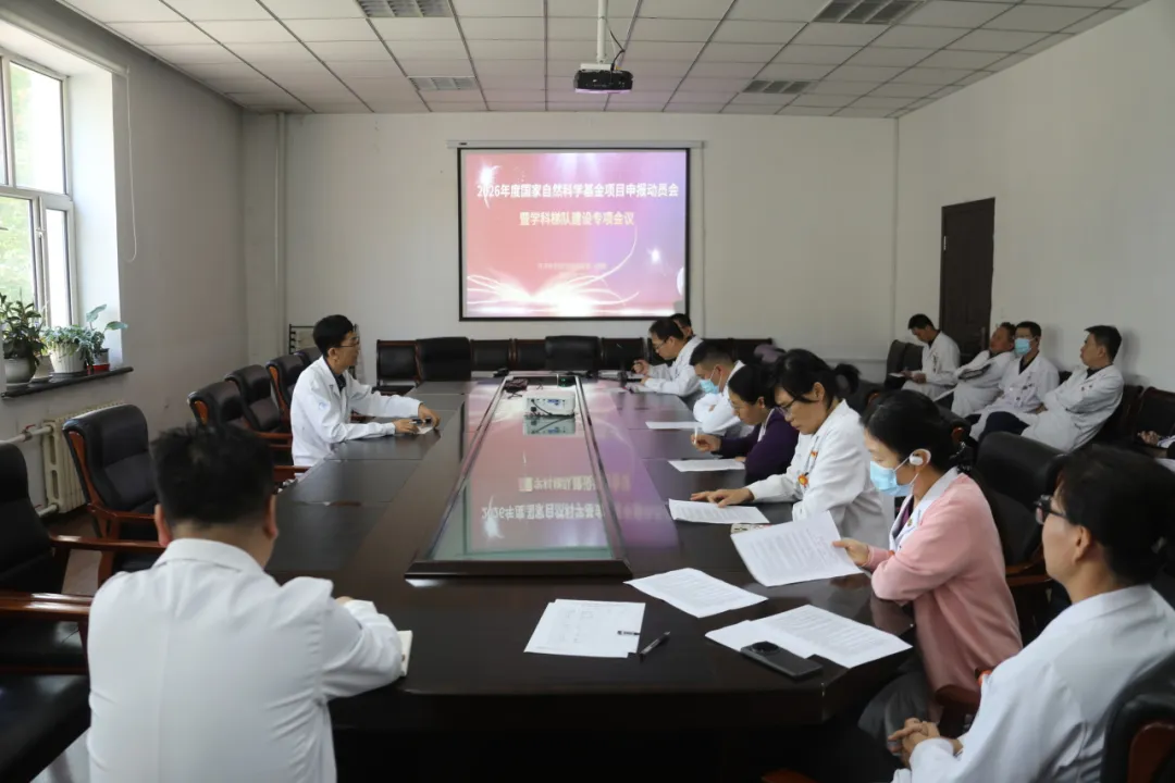 9月25日下午,齐医附属一院2026年度国家自然科学基金项目申报动员会暨学科梯队建设专项会议在第一会议室举行。科研科副科长吴迪主持会议,薛徽副院长出席会议,市级领军人才梯队,学院重点学科,重点专科及“学术型科室”等学术骨干20人参加会议。