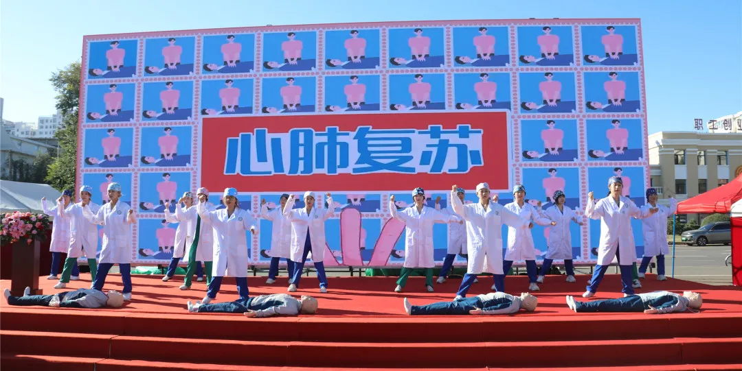 歌曲演唱结束后,现场掌声雷动。今年68岁的王大爷激动地说:“本来是来检查身体的,没想到还能和医护人员一起唱歌庆祝国庆,心里特别高兴,感觉自己也年轻了好几岁!”。在工人文化宫28日的义诊现场,我院的17名学生为参加义诊的百姓表演了《心肺复苏操》,律动的音乐,流畅的动作,让在场百姓听得认真、看得投入,现场互动频繁,科普效果显著。