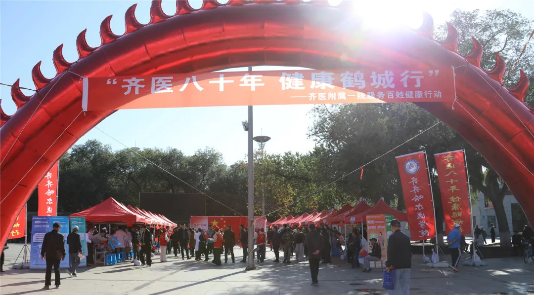 编者按:为喜迎学院建校80周年,在国庆、中秋双节即将来临之际,9月28日上午,“齐医八十年 健康鹤城行”服务百姓健康大型义诊活动在市工人文化宫广场启动。学院党委副书记张可勇,市卫健委、市医保局、市市场监督管理局相关领导出席活动并致辞。学院附属第一、第二、第三、第四医院主要领导出席活动。9月30日,大型义诊团队走进富拉尔基,在红岸公园广场为富区百姓带来一场健康盛宴。