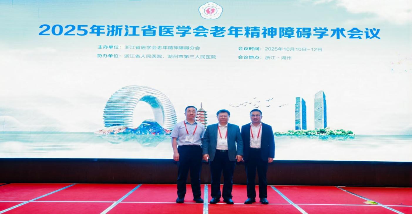 与浙江省医学会老年精神障碍分会主委于恩彦教授,湖州市第三人民医院靳西龙副院长合影
