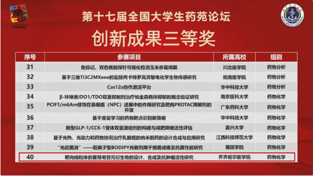 今后,我院将继续坚持以赛促教、以赛促学、以赛促创,进一步强化跨学科融合与产学研协同,鼓励更多学生投身科研创新与实践服务,推动更多高质量创新成果的涌现,助力学生在更广阔的舞台上展现才华,为培养新时代药学拔尖创新人才作出更大贡献。