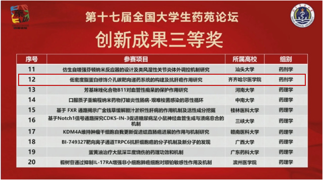 一直以来,我院高度注重学生实践创新能力的培养,积极搭建学科竞赛与科研训练平台,营造了良好的创新创业氛围。本届论坛中所取得的优异成绩,不仅是对师生共同努力的肯定,也是我院药学类专业建设与人才培养质量的重要体现。