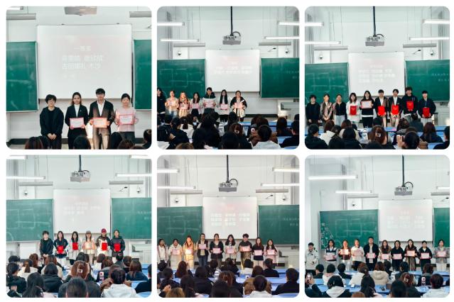 表彰环节,三位“三下乡”一等奖获得者率先分享实践感悟。常雯皓走社区、巡河道、伴老人,在基层一线体悟“青春当以脚步丈量大地”;古力娜扎·木沙赴新疆阿克苏依尔玛村支教30天,以非遗传承、礼仪教学为桥,为边疆儿童播撒文化与团结的种子;屈晨曦率《承红色基因 扬时代新帆》宣讲团深入乡村,用通俗科普助力健康知识落地,直言“青春星火可聚,乡村振兴有我”。朴实的话语、鲜活的故事,引发现场共鸣。针对怕帮倒忙、不知如何参与等学生疑问,获奖代表建议从小事做起,多学多做——为老人解误区、向村民传知识,皆是实践。颁奖仪式上,各级奖励依次揭晓,获奖学子接过证书,定格奋斗身影。于春洋老师对实践成果给予肯定,并寄语25级新生,走出校园、扎根基层,在志愿服务中彰显青年担当。