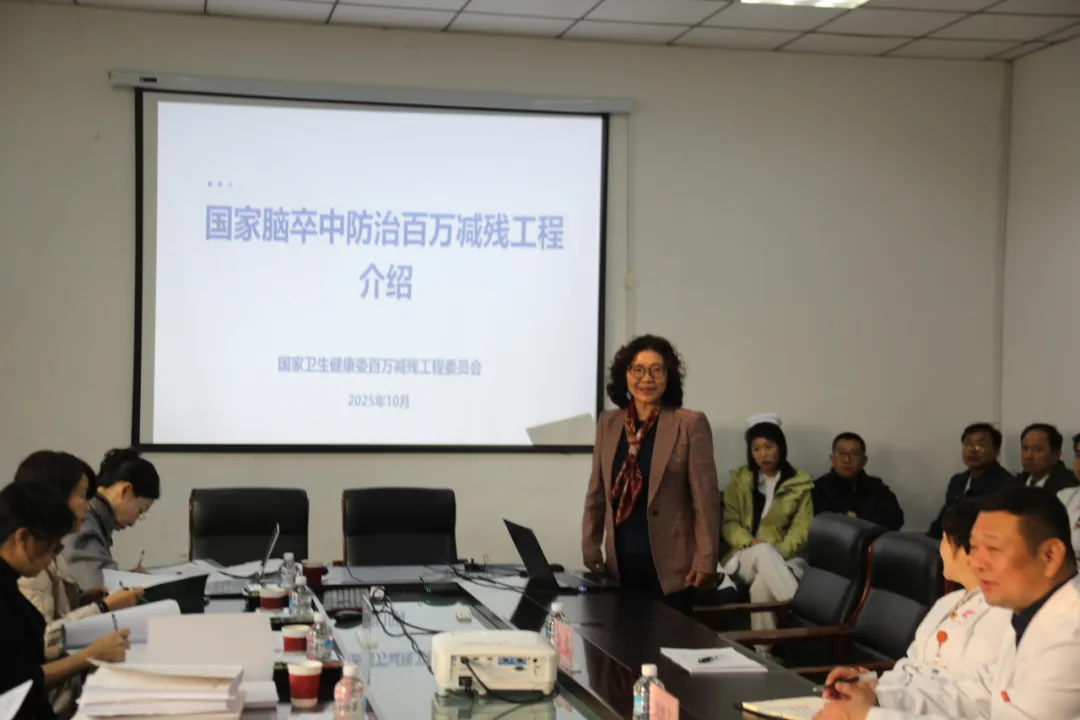 为进一步加强卒中中心建设,推进落实国家百万减残工程,10月29日,受国家卫生健康委及国家百万减残工程委员会委托,中国卒中专科联盟副主席、黑龙江省卫生健康委百万减残工程专家委员会主任委员、哈尔滨医科大学附属第二医院卒中中心主任王丽华教授一行10余位专家对我院“三级医院卒中中心(高级卒中中心)”建设进行调研。院领导班子成员及卒中中心相关科室负责人员参加会议。
