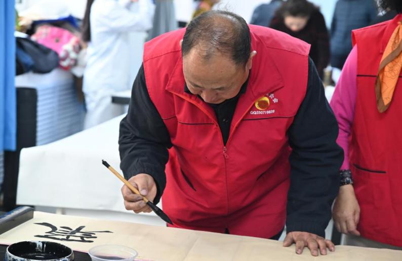 同时,毛笔字学习活动现场暖意融融。在非遗传承人与书法家协会志愿者的指导下,会员们手握毛笔,从握笔姿势、基本笔画学起,在宣纸上认真临摹,感受笔墨间的传统文化韵味。