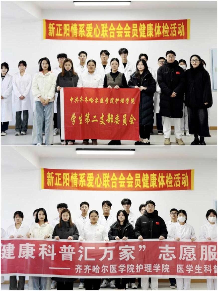 为深入贯彻习近平新时代中国特色社会主义思想,认真落实新时代党的建设总要求和立德树人根本任务,11月9日,齐齐哈尔医学院护理学院学生第二党支部与齐齐哈尔工程学院医学院学生第一党支部携手联动,联合新正阳中医医馆、齐齐哈尔爱心联合会、书法家协会共同开展“健康体检”志愿服务活动,支部宣传委员梁丹带领党员和积极分子赵珂炜、吕佳艺、廖峡、孟繁瑞参加了此次活动。活动以中医健康体检与传统毛笔字学习为核心内容,为爱心联合会会员送上健康关怀与文化滋养,彰显校际合作的公益力量与文化传承的时代价值。