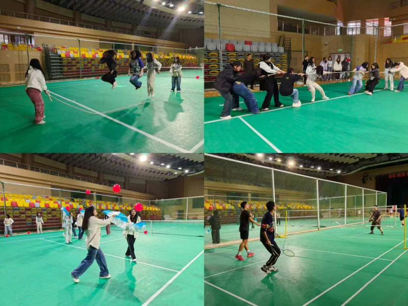 体育馆内,各类运动项目依次开展:羽毛球场上,同学们在清脆的击球声中体会运动带来的畅快之感;拔河区域内,参赛队伍在力量的较量中凝聚团队精神;跳大绳、趣味游戏区域,同学们在轻松愉悦的氛围里释放情绪……
