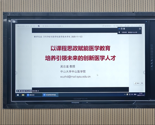 为深入贯彻落实立德树人根本任务,全面推进课程思政高质量建设,11月12日下午,我院在部系楼A-B101教室举办“课程思政名师讲坛”活动。此次活动邀请了中山大学中山医学院吴忠道教授进行线上讲座。讲座由我院党委书记孙贺主持,医学技术学院全体专任教师到场学习。