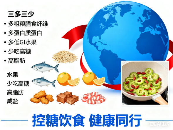 让我们从饮食入手,控主食量,选杂粮;多吃蔬菜,少甜果;少油盐糖,忌酒精;定时定量,避免暴饮暴食,防血糖波动。为血糖健康加油,与糖尿病和谐共处,拥抱健康生活。