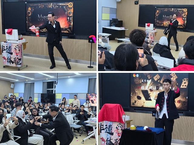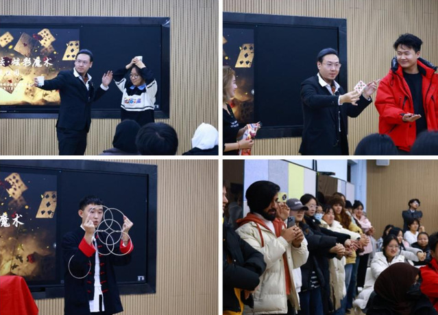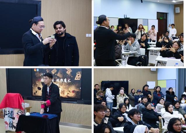 现场反响格外热烈。许多同学全程站着观看学习,专注投入,沉浸在魔术的奇幻世界中;留学生对中国非遗戏法也表现出了浓厚的兴趣,活动结束后仍围绕表演细节交流讨论,久久不愿离场。
