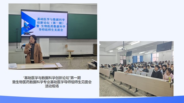 为落实《“健康中国2030”规划纲要》关于培育医学交叉创新人才的战略部署,全面推进我院创建医科大学的核心任务,丰富各学科及交叉学科建设,推进博士学位授予单位的各项准备工作,做好国家自然科学基金辅导,创新医药基础研究与数据科学、人工智能的结合,搭建高水平学术交流平台,探索复合型创新人才培养新模式,助力生物医药数据科学专业人才培养,基础医学院主办的“基础医学与数据科学创新论坛”第一期暨物医药数据科学专业基础医学导师组师生见面会活动于2025年11月12日顺利举行。论坛特别邀请到哈尔滨医科大学生物信息科学与技术学院肖云教授、顾云燕教授作专题讲座,学院师生代表参与本次活动。