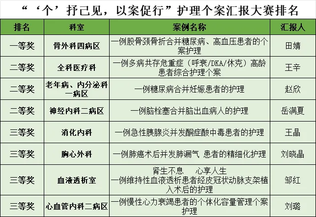 为进一步提升护理服务质量,深化优质护理内涵,充分展现我院护理人员的专业能力与创新精神,我院于11月14日下午在内科楼学术报告厅举办“‘个’抒己见,以案促行”护理个案汇报大赛。