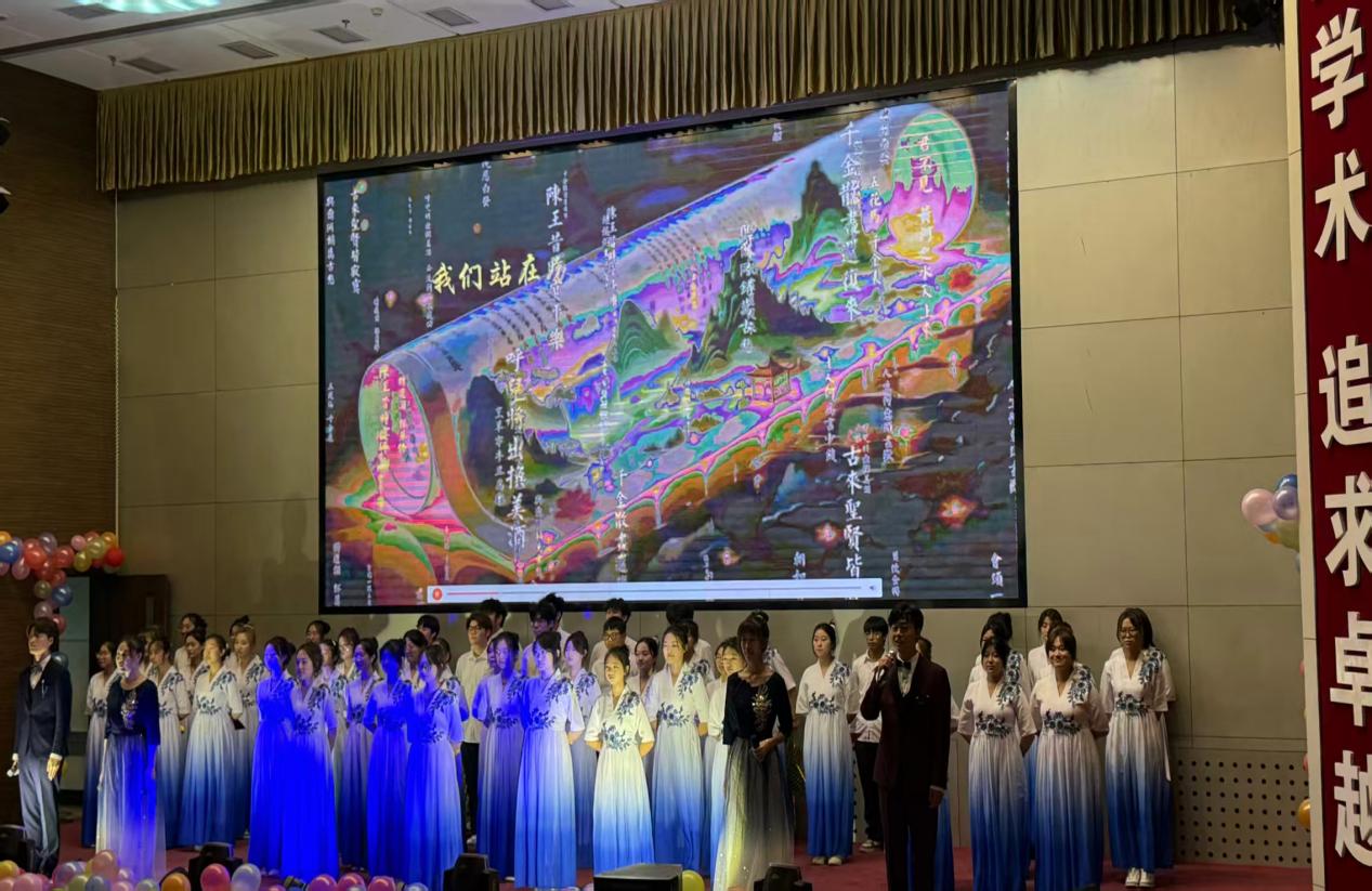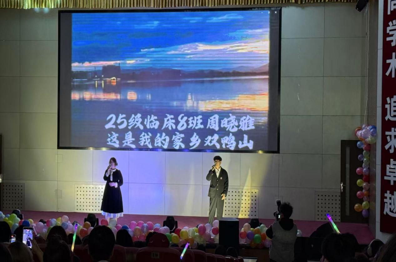 歌曲对唱《落叶归根》将轻柔的歌声与思乡情愫相融,采用了征集的几十张学生家乡照片作为MV背景,细腻刻画了新生对家乡的眷恋之情;诗朗诵《华夏荣光》以铿锵语言传递爱国信念,鼓励新生传承华夏精神在医学之路上锚定初心、逐梦前行;话剧《赵尚志》用深沉的叙事演绎带观众们重温英雄岁月,让新生在感动中厚植家国情怀。