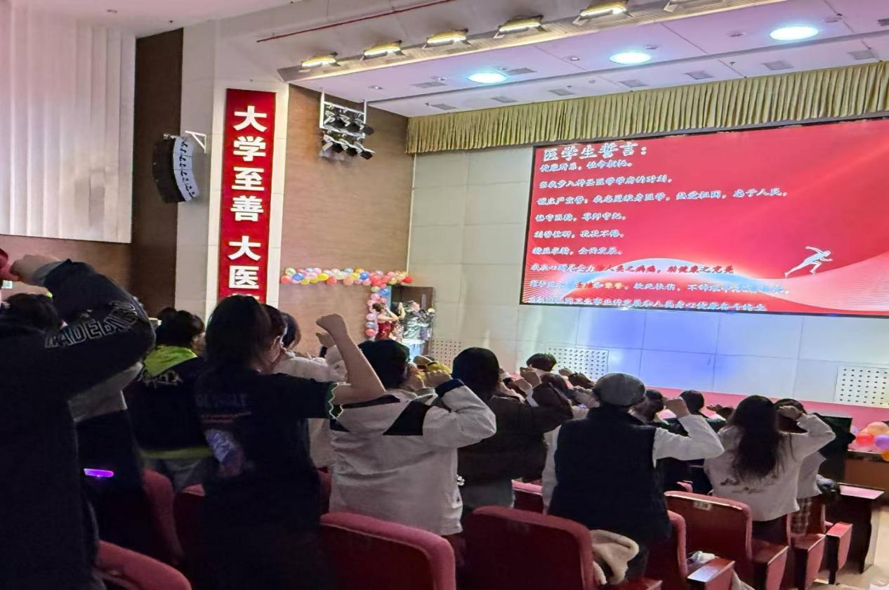 最后,汇演在《别问我什么是disco》的动感旋律中落下帷幕。此次汇演的内容丰富、演出形式多样,演出中亮点频现,台上台下互动热烈。在汇演过程中,基础医学院还特别设置了VCR新生家长寄语、现场辅导员寄语及辅导员领誓重温医学生誓言等环节,将“三全育人”、“五育并举”的教育理念融入进来,为2025级基础学子上了生动的一课。