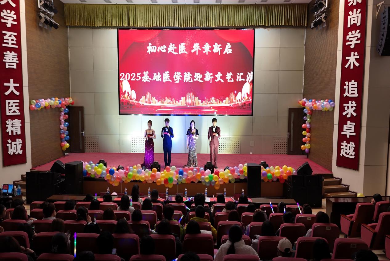 11月7日晚,基础医学院“初心赴医,华章新启”2025级迎新文艺汇演在学校多功能厅圆满落下帷幕。基础医学院党委副书记吕钢及基础医学院学工办全体辅导员老师与2025级新生共同欣赏了精彩的文艺汇演。