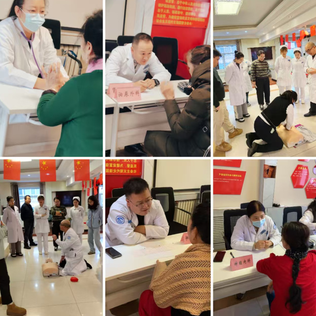 一到红星社区,医务人员就来到社区居民中间,通过询问病史、体格检查、心电图等方式,了解患者的身体健康状况,针对不同疾病和个体差异提出合理的诊疗建议和个性化治疗方案,并对居民提出的问题进行详细解答。同时,有针对性地对合理用药、健康饮食等健康知识进行宣教,叮嘱患者日常注意事项,传播健康理念,提升居民健康素养。令社区工作者和居民特别感兴趣的是,重症医学科张东海主任为居民们进行了实用的徒手心肺复苏术培训,增强大众的急救意识,使更多的人能够掌握这项技能,进一步提高身边心脏猝死患者的抢救成功率。本次活动累计义诊百余人次,专家们贴心、专业的诊疗服务赢得了社区居民的一致好评。