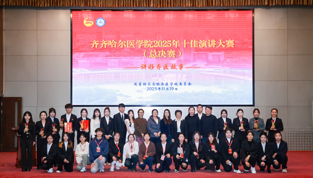 11月19日,齐齐哈尔医学院2025年度校园十佳演讲大赛决赛如期举行。本届大赛以“讲好齐医故事”为核心主题,不仅是一场语言艺术的竞技,更是一次对齐医精神谱系的深度挖掘与时代诠释,旨在纪念抗日战争暨世界反法西斯战争胜利80周年,并为即将到来的建校80周年献上青春的礼赞。