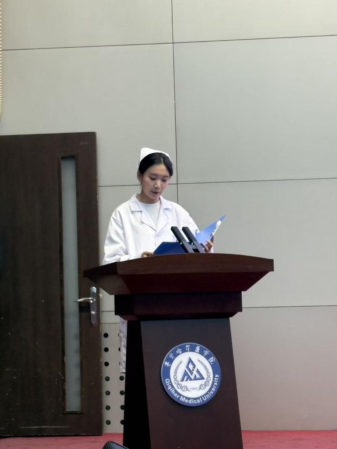 会上,高音院长介绍了学院概况及校园文化对新生提出殷切期望;李桂玲副院长介绍了护理硕士专业学位授权点基本概况;马秀梅副院长详细解读了专业培养方案及相关要求;王坤主任对安全及学生管理制度相关内容进行了详细介绍。2023级田梦同学带领全体新生进行了“南丁格尔”誓言宣誓。新生周佳慧同学作为代表发言,表达了对大学美好生活的憧憬与奋发向上的决心。最后,徐辉书记为全体新生进行专业思想教育。他强调,面对新时代发展机遇,同学们应在扎实掌握课堂知识的基础上,积极投身“第二课堂”,全面提升综合素质。他鼓励大家珍惜时光、锤炼本领,努力成长为德才兼备、可担大任的护理人才。