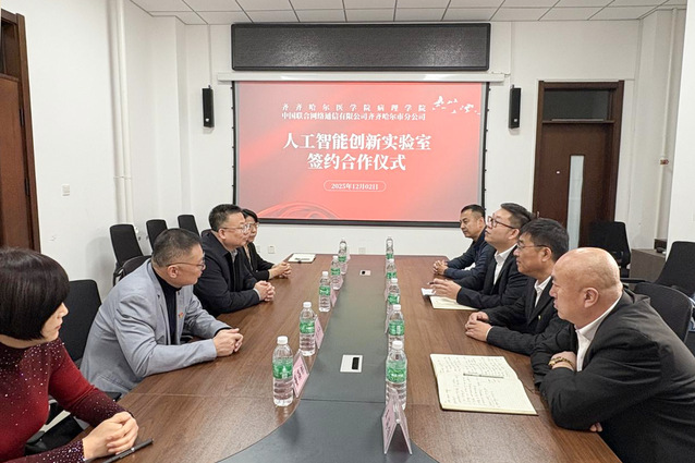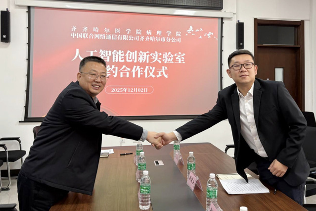 12月2日,齐齐哈尔医学院病理学院与中国联通齐齐哈尔分公司共同举办人工智能创新实验室合作签约仪式。中国联通齐齐哈尔分公司技术总监战宗庆率团队出席。齐齐哈尔医学院副院长、党委常委于海涛,病理学院党总支书记李迎新,病理学院院长、临床病理诊断中心主任李兴江及双方相关部门负责人和骨干人员共同见证了签约仪式。