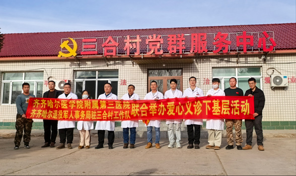 我院为进一步推动优秀医疗资源下沉,积极响应“齐医八十年 健康鹤城行”服务百姓健康义诊活动号召,11月26 日,我院组建多学科专家团队,携手市退役军人事务局驻泰来县三合村工作队,在三合村开展“健康进村”大型义诊活动,将三甲医院的专业诊疗服务送到村民家门口。