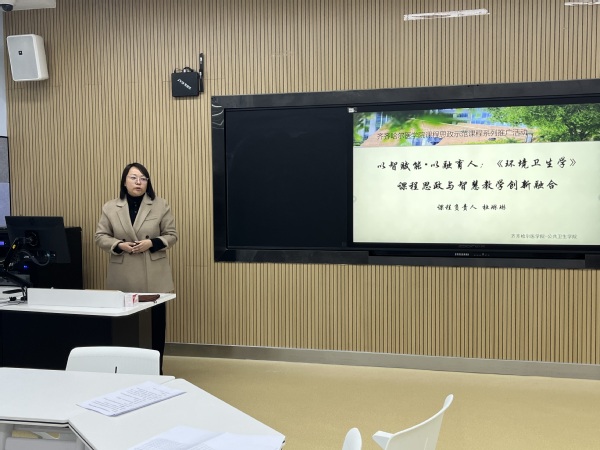 国家级一流课程《环境卫生学》负责人、省级课程思政示范课程和教学团队培育项目主持人杜琳琳副教授,以“以智赋能,以融育人——《环境卫生学》课程思政与智慧教学创新融合实践”为题,进行了详实的经验分享。杜琳琳首先介绍了课程的基本概况与“知识-能力-价值”三位一体的育人目标。她重点阐述了课程思政的整体设计思路,在“教学创新”部分,她生动演示了如何依托在线课程平台、知识图谱等智慧教学手段,将思政教育“无声”浸润于教学全过程。她还分享了课程在提升学生科学素养、职业认同感与社会责任感方面取得的显著成效,并对未来的持续改进方向进行了反思与展望。其融合前沿教育技术与深厚育人情怀的创新实践,为在座教师提供了极具操作性的参考范式。
