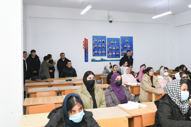 为深入贯彻落实国家关于来华留学生培养工作的系列政策部署,全面提升来华留学生教育质量与管理水平,12月3日下午,国家留学基金委副秘书长田露露、省教育厅对外合作与交流处处长王少松一行5人来院,就来华留学生培养工作进行实地调研。学院党委书记、院长赵光,副院长裴俊瑞,国际交流合作处处长温宪春、副处长许伟岚、李倩等参加座谈并一起实地走访。