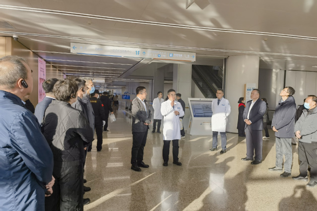 12月4日下午,学习团抵达河北医科大学第一医院后,首先开启沉浸式院内观摩。河北医科大学第一医院党委书记赵增仁全程陪同学习团人员,先后走进5G指挥中心、检验中心、日间诊疗中心、急诊科、国际医疗部及临床科室等核心区域,讲述医院从5G技术赋能下的智慧医疗调度,到日间诊疗流程的高效优化;从急诊“生命绿色通道”的规范运转,到医院文化空间的人文营造,每一处细节都让学习团成员直观感受到河北医科大学第一医院在“精致医院”建设中的文化理念、创新实践与突出成效。