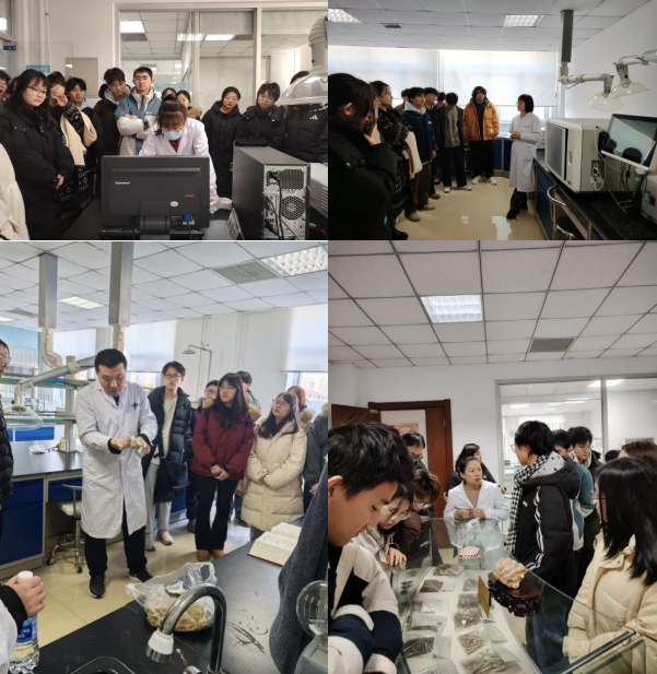 在理论授课之外,学生们还分组进入理化实验室、中药标本室、微生物实验室、化妆品检验专区等专业场地实地参观。大家近距离观摩高效液相色谱仪、微生物培养箱等专业设备的实操过程,直观感受全流程质控体系的严谨性,不少学生还就岗位工作细节、职业发展方向等问题与技术人员深入交流,现场学习氛围浓厚且热烈。