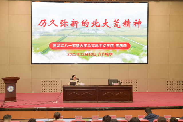 为深入学习贯彻党的二十届四中全会精神,引导广大师生深刻领悟“中国共产党人精神谱系”的丰富内涵与时代价值,从中汲取信仰力量、砥砺奋斗精神,12月10日,学院邀请全国高校“中国共产党人精神谱系”宣讲团专家、黑龙江八一农垦大学马克思主义学院院长陈彦彦教授来院,为学院思政工作队伍和学生骨干宣讲“北大荒精神”,凝聚新时代奋进力量。报告会由学院党委常委、宣传统战部部长董晓明主持。