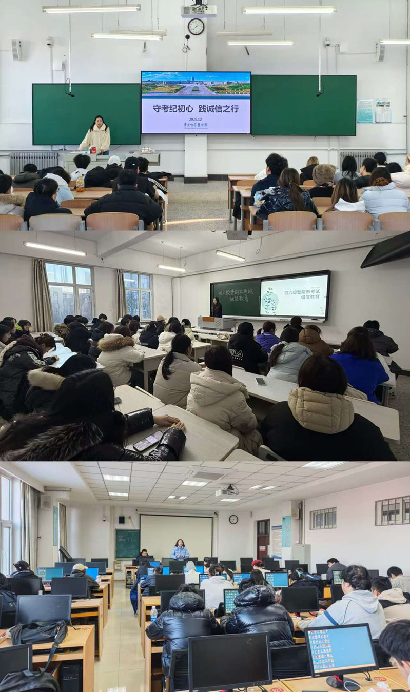 在全国大学英语四、六级及期末考试即将到来之际,辅导员们深入班级,聚焦“考风考纪”召开多场专题教育会。会上,老师们再次详细解读《齐齐哈尔医学院违纪学生处分办法(修订)》中考试违纪的认定条款与处分规定,并结合相关案例阐述考试违纪的后果和对学生的后续影响,为学生划定考场行为红线。教育会增设了交流与承诺环节,组织学生当场签署诚信考试承诺书,将纪律约束内化为学生的自觉行动。